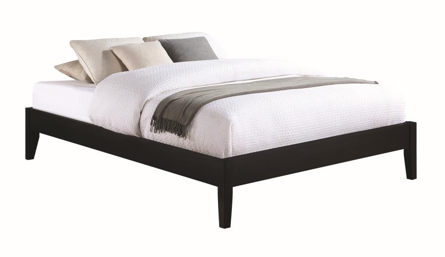 Clean lines in a simple transitional style with this platform bed. A perfect addition to existing modern bedrooms, the simplicity of this bed frame lends itself to whatever decor color palette you choose. The crisp finish maintains a dynamic and elegantly understated expression fit for bedrooms of children and adults alike. Flush side panels and tapered legs offer a sleek silhouette and modest aesthetic. Place this chic bed frame in a contemporary bedroom and allow its chic simplicity to take center stage.1