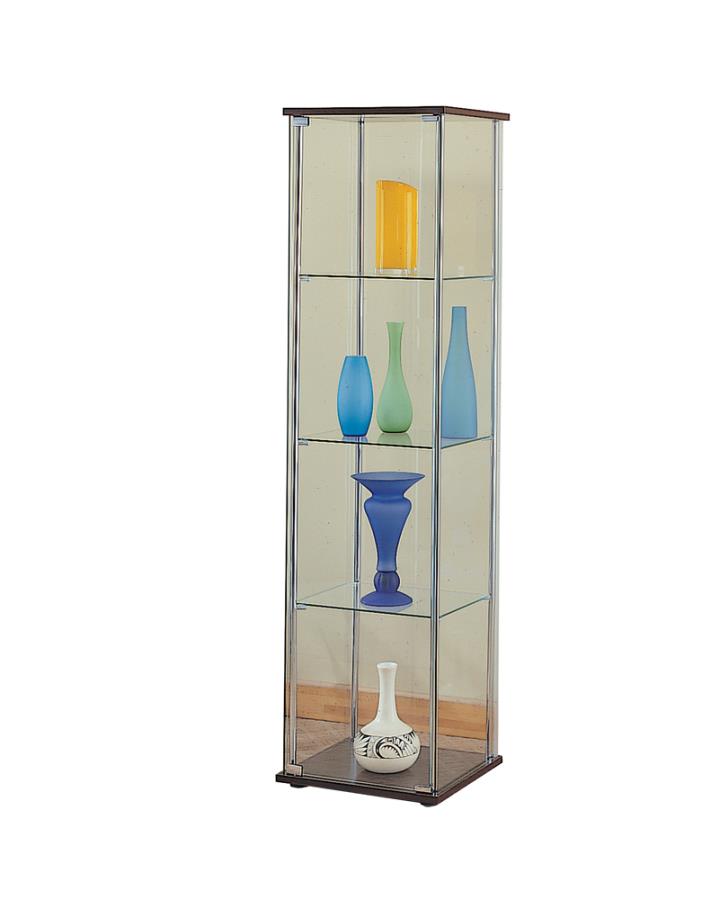 Rectangular 4-shelf Curio Cabinet Cappuccino and Clear