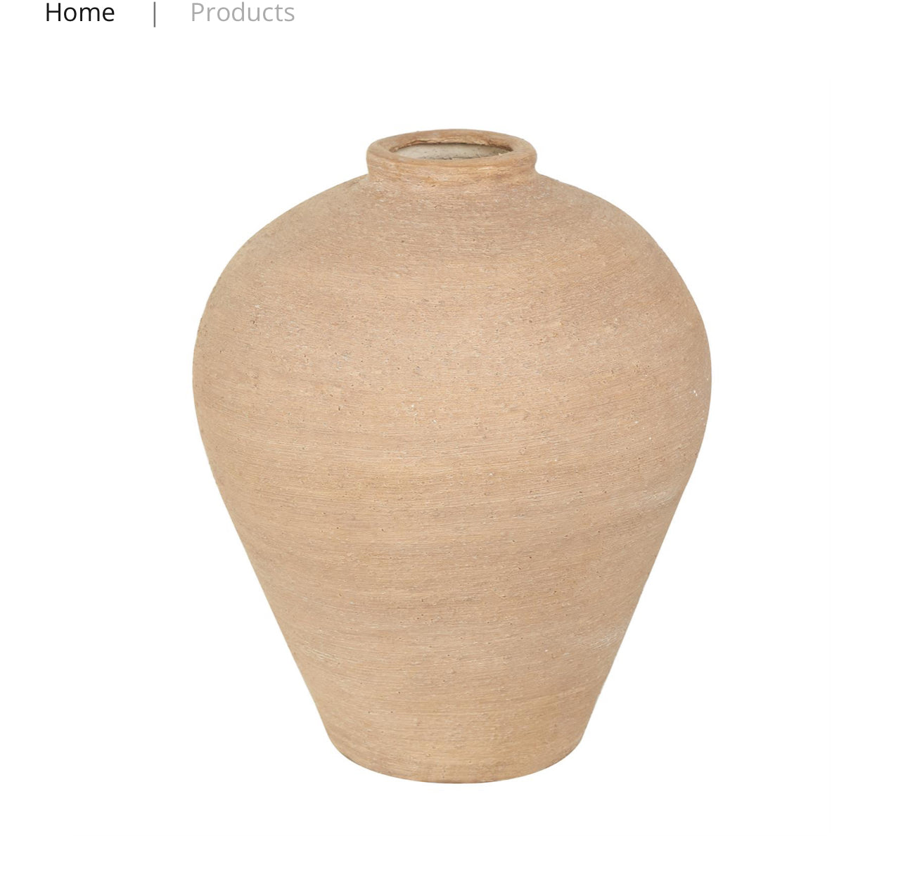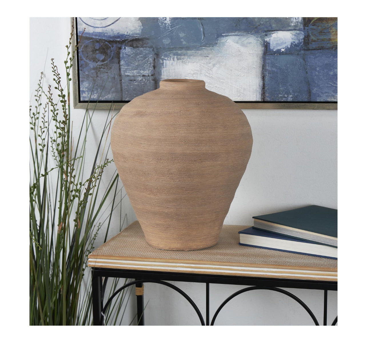 BEIGE CERAMIC WIDE TEXTURED VASE, 14" X 13" X 17"
