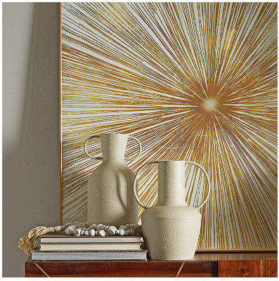 Metal flower vases feature a versatile clay textured jar figure with sponge-like speckles and easy to carry handles