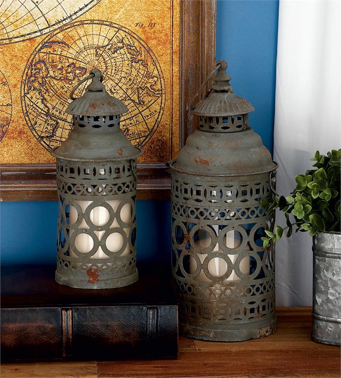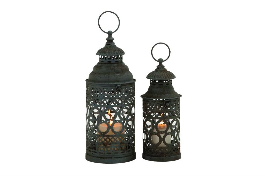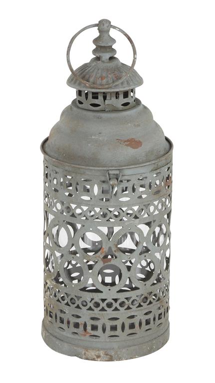 BLACK METAL CANDLE LANTERN WITH INTRICATE SCROLL WORK