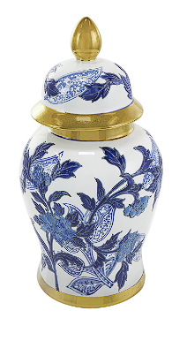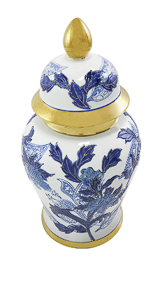 Our blue decorative jar features intricate floral designs and gold accents for a unique, elevated look