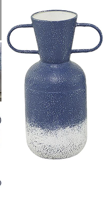 BLUE METAL VASE WITH HANDLES