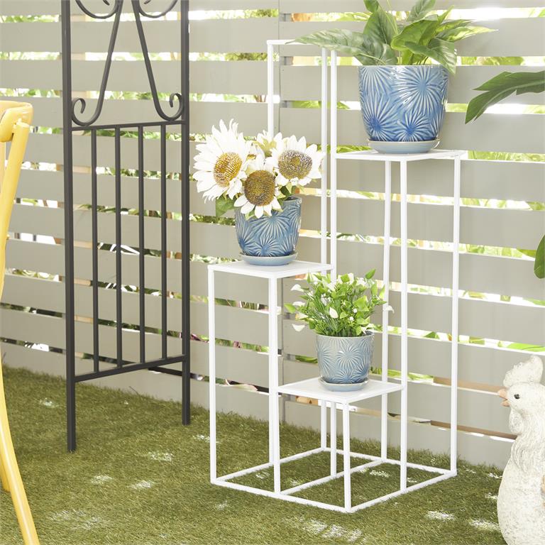 - Molded porcelain pots are carved with details and paired with rounded saucers in these set of 3 planters pot