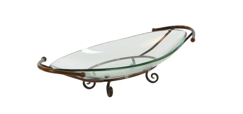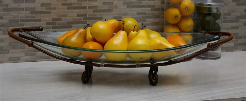 Brass Glass Modern Kitchen Serving Bowl, 30" x 12" x 6"