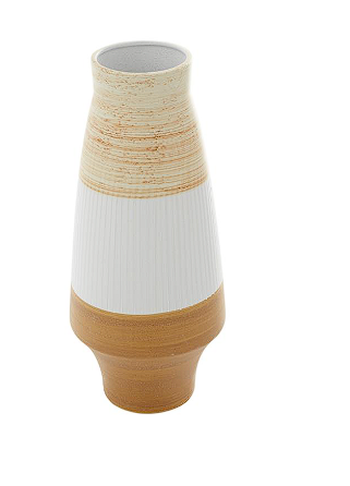 BROWN CERAMIC HANDMADE VASE WITH TERRACOTTA ACCENTS, 8" X 8" X 18"
