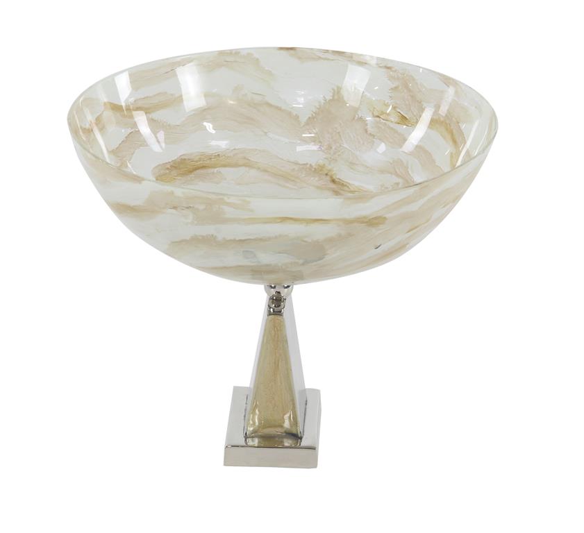 For that chic look, it flaunts a laminated glass bowl atop a geometric base stand