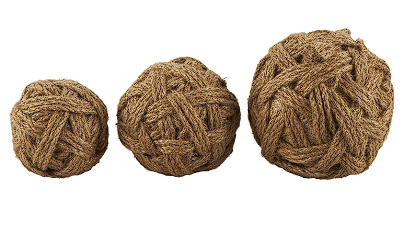 - Rope ball décor is constructed from jute rope woven and wrapped around the interior frame