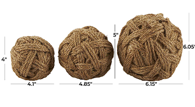 BROWN JUTE HANDMADE WOVEN DECORATIVE BALL ORBS & VASE FILLER, SET OF 3 6", 5", 4"W