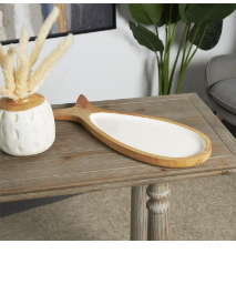 BROWN MANGO WOOD FISH TRAY WITH WHITE ENAMELED INTERIOR, 20" X 8" X 1"