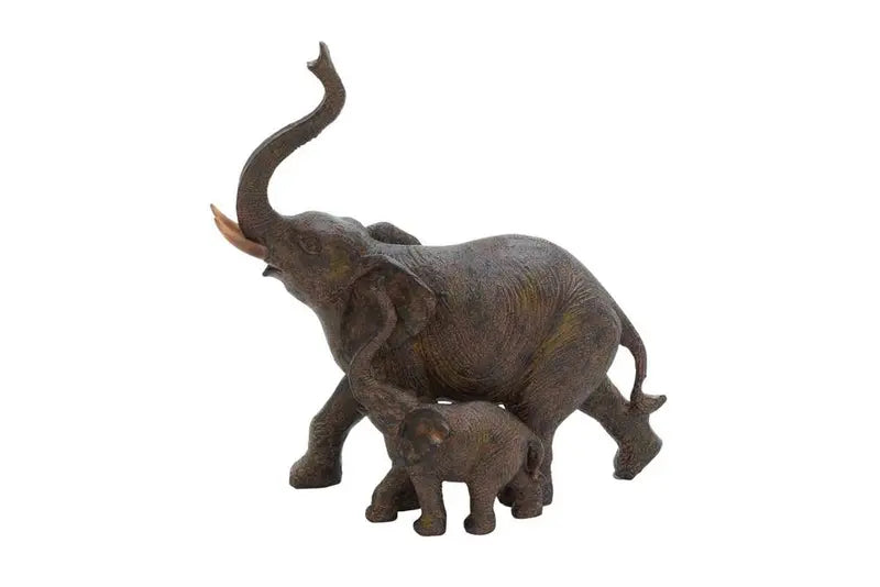 Brown Polystone Eclectic Elephant Sculpture, 11" x 5" x 11"