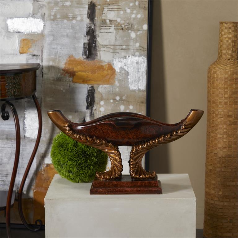 A polystone decorative bowl that comes in brown and bronze finishes for a traditional look
