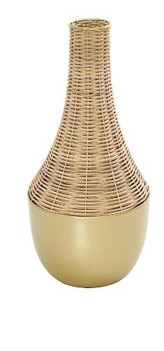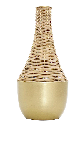The handmade vase comes in a traditional brown rattan color with a gold solid base, melding together a classic and rustic finish