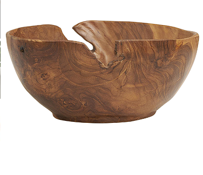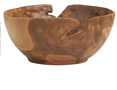 BROWN TEAK WOOD HANDMADE DECORATIVE BOWL WITH NATURAL GROOVES, 11" X 11" X 5"
