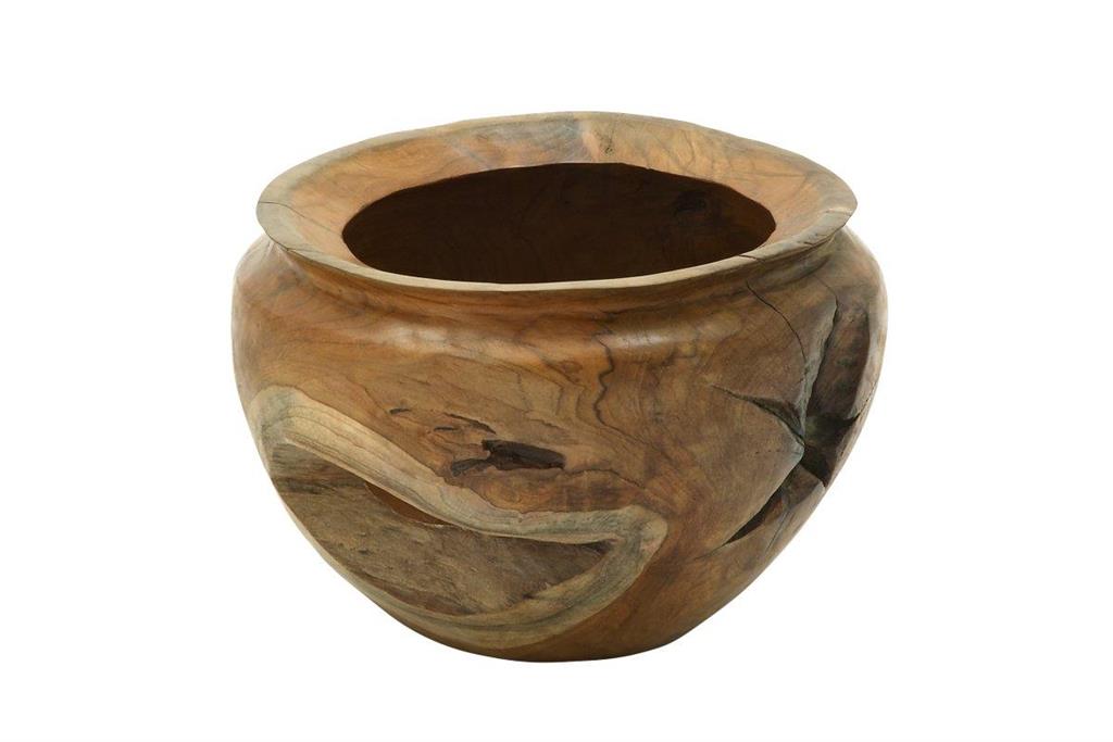 This natural style inspired design features brown teak wood bowl features a magnificent carved bowl from solid teak wood complete with wood stains, tree rings, and natural discoloration adding to its naturalistic attribute