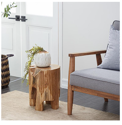BROWN TEAK WOOD HANDMADE LIVE EDGE TREE STUMP ACCENT TABLE, 12" X 12" X 16"