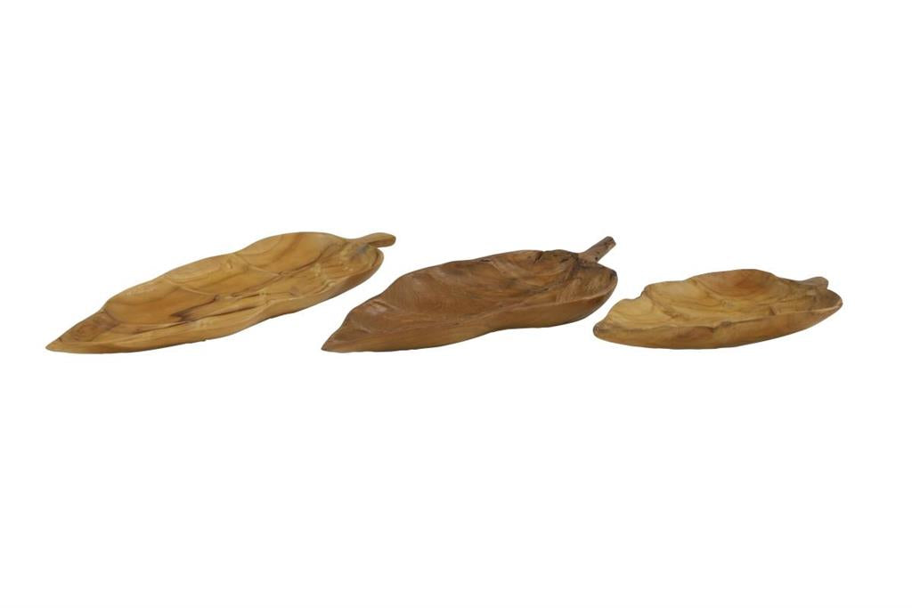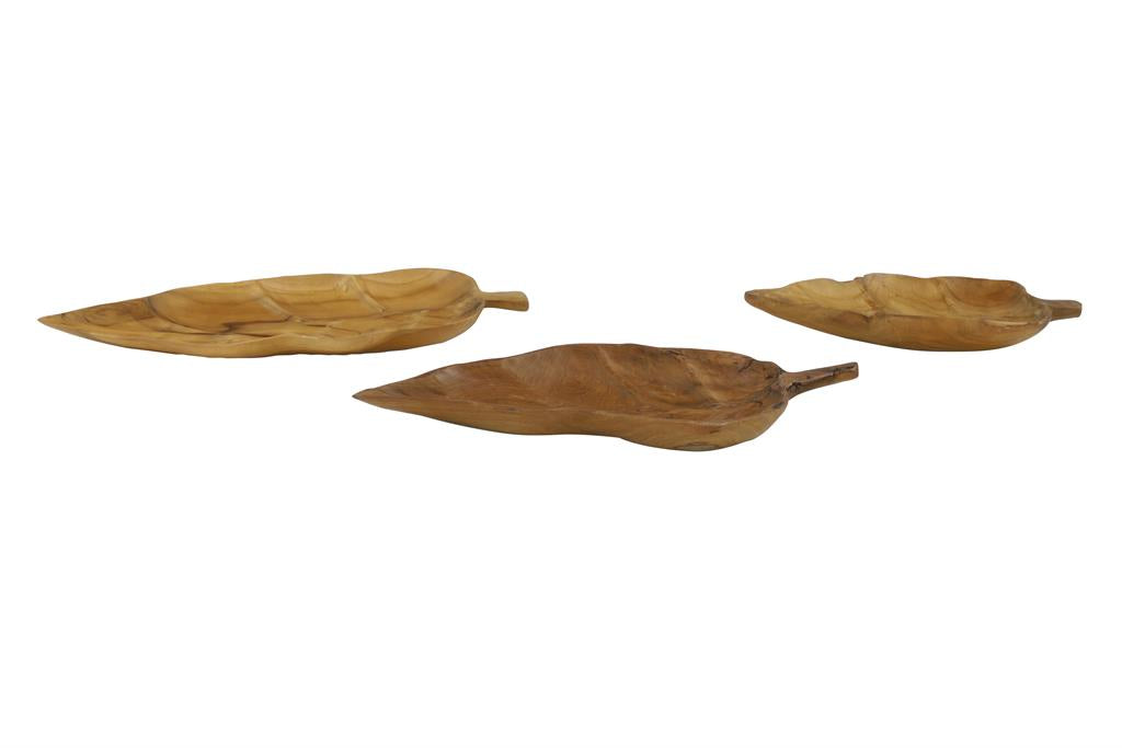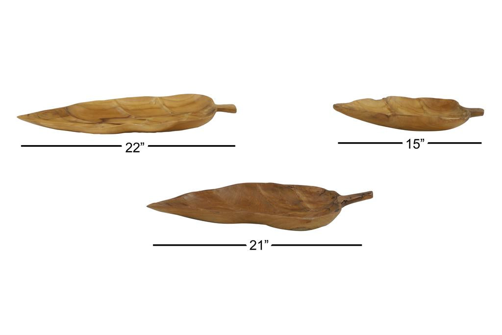 Each natural wood brown tray features leaf carved patterns for an even dramatic look