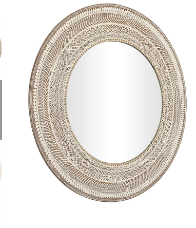 - This decorative round mirror feature an extra large natural mirror design with a tribal pattern of triangles, lines and ovals around the edges