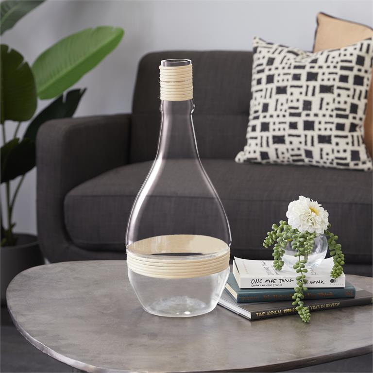 CLEAR GLASS VASE WITH RATTAN DETAIL
