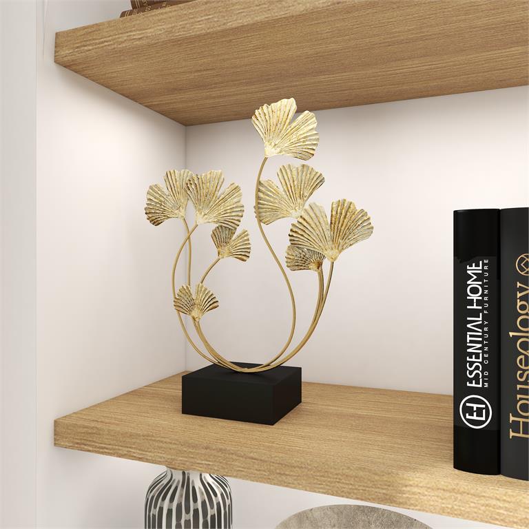 Iron leaves and stems with block base with rubber base prevents scuffing and sliding