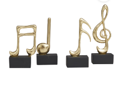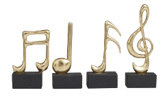 GOLD RESIN MUSICAL NOTES SCULPTURE WITH BLACK BASE, SET OF 4 9, 7, 7, 6"H
