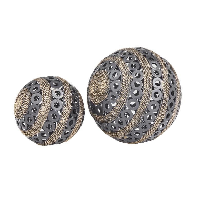 - Iron is cut and intricately sculpted to form a stylish set of decorative ball figures