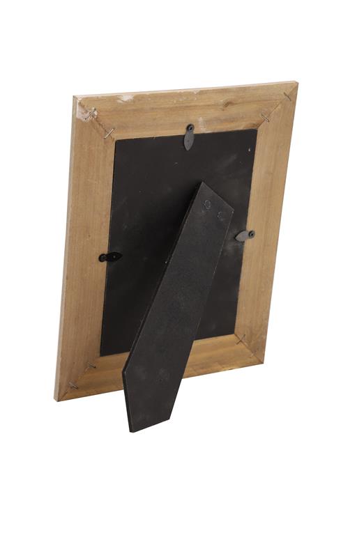 Large wood picture frame made from Chinese fir wood and red pine woods; metal hinges secure backing in place; each frame holds a 5” x 7” print and is protected with a glass cover