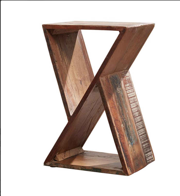 Sleek and stunning, this reclaimed wood accent table is full of geometric details. With an hourglass-inspired shape, the silhouette features two open triangles. In a natural finish, the exposed wood grain adds depth next to any sofa. Decorate the clean lines with your favorite lamp or with a vase of fresh flowers. The perfect combination of modern and rustic, this charming piece feels airy in contemporary spaces. |