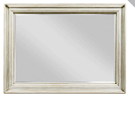 Sunwashed picture framed mirror with beveled glass is scaled for use in any room in the home.