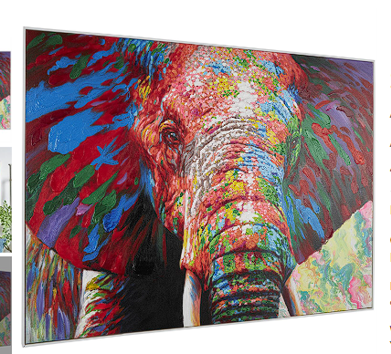 Elephant canvas art is crafted from a combination of canvas, wood, and acrylic materials