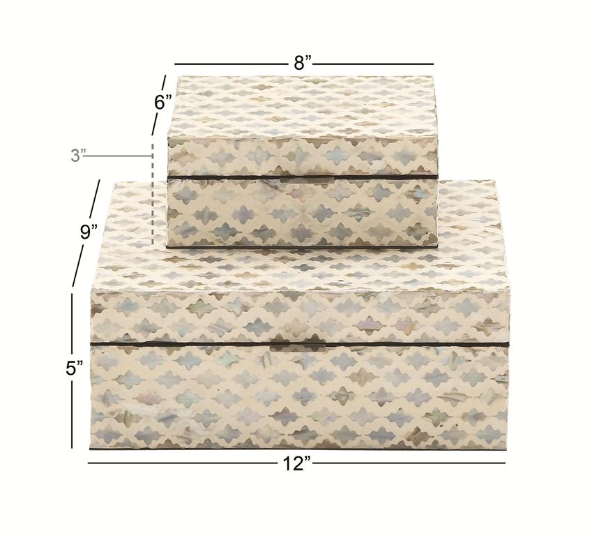 Box storage set in varying sizes includes 2 rectangular decorative boxes with lids