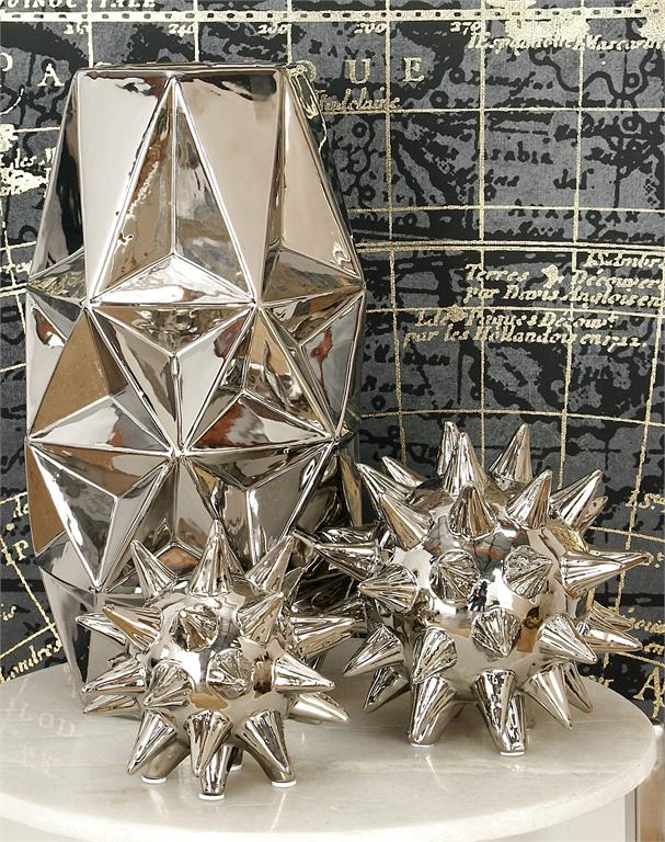 SILVER CERAMIC GLAM GEOMETRIC SCULPTURE