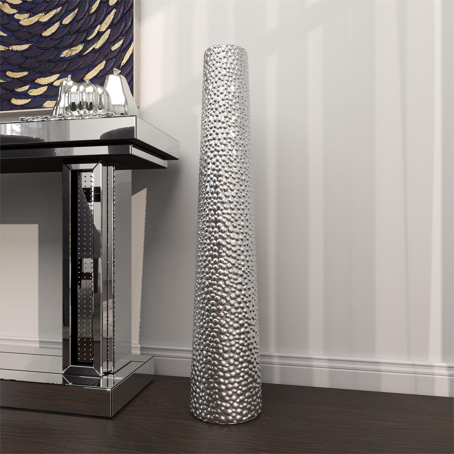 SILVER CERAMIC TALL VASE WITH BUBBLE TEXTURE