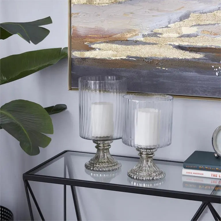 Silver Glass Vintage Hurricane Lamp, 10", 12"H