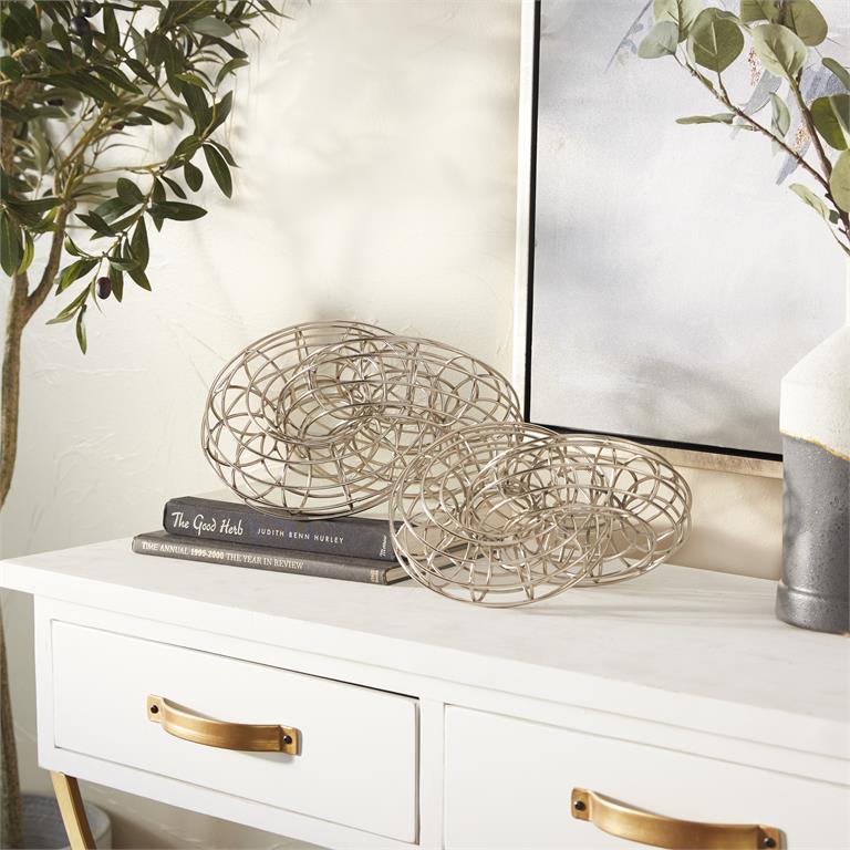 These table sculptures highlight a metallic silver finish with soft sheen for a delicate look