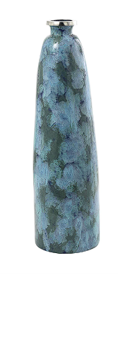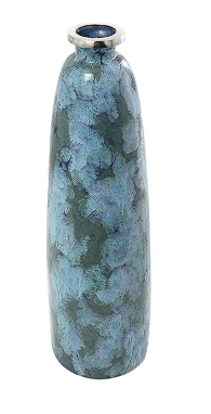 TEAL GLASS HANDMADE VASE WITH SILVER RIM, 10" X 10" X 34"