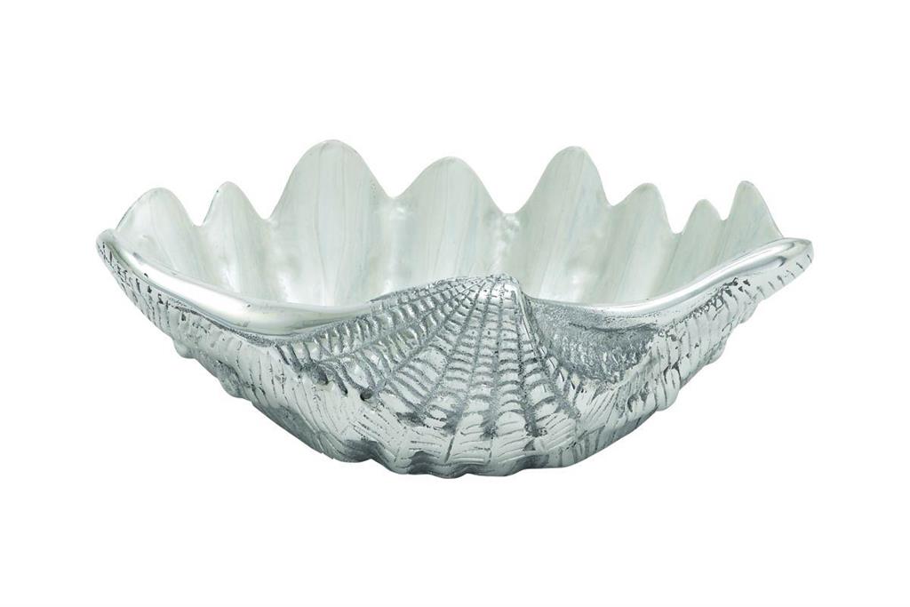 WHITE ALUMINUM SEA LIFE SHELL SERVING BOWL WITH ENAMEL INTERIOR