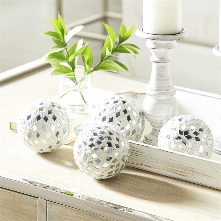 White decor orbs for a vase or bowl with striking mosaic pattern