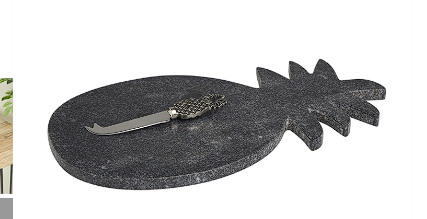 Pineapple shaped cutting board includes a pineapple shaped cheese knife, making a perfect gift set