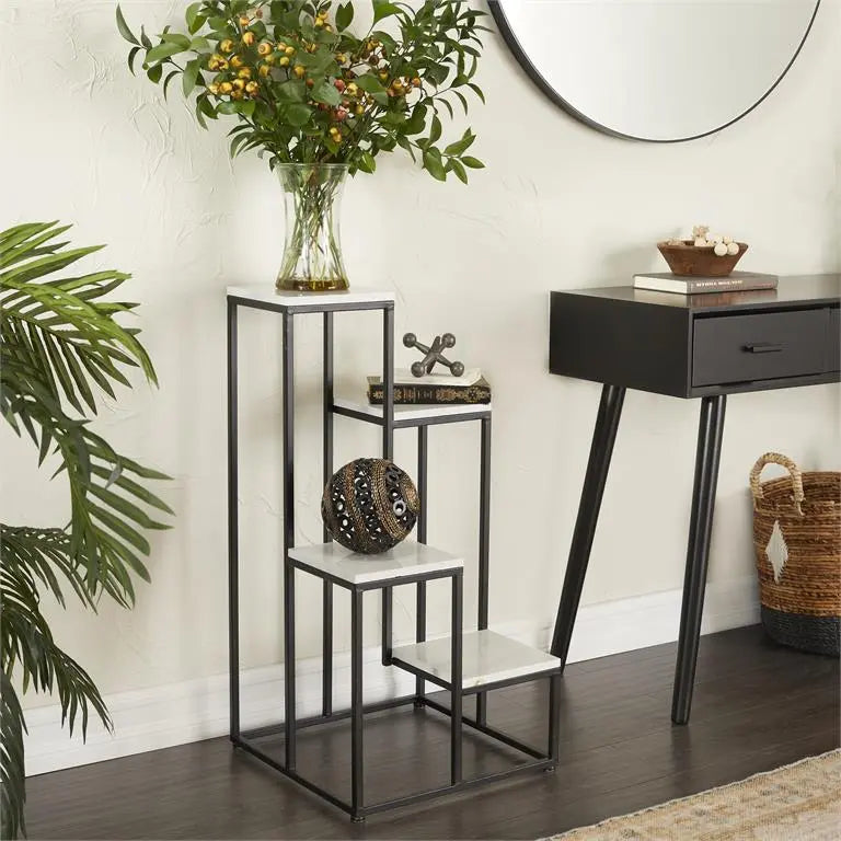 White Metal Modern Plantstand, 16" x 16" x 31"