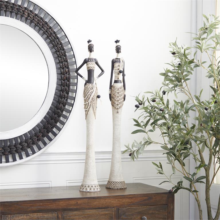 WHITE POLYSTONE WOMAN STANDING AFRICAN SCULPTURE WITH INTRICATE DETAILS 1 PIECE