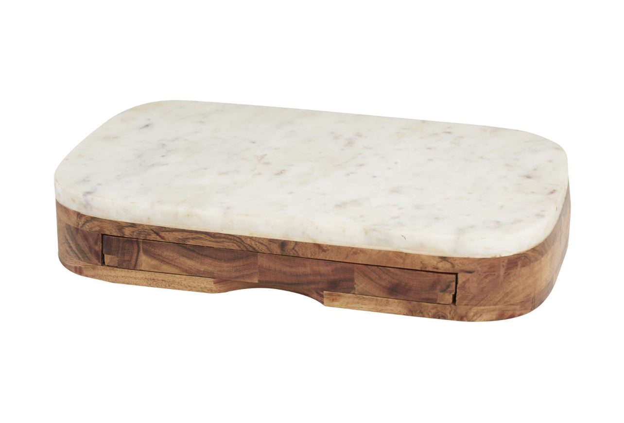 WHITE WOOD HANDMADE CUTTING BOARD WITH 4 CHEESE KNIVES, SET OF 5 16"W, 3"H